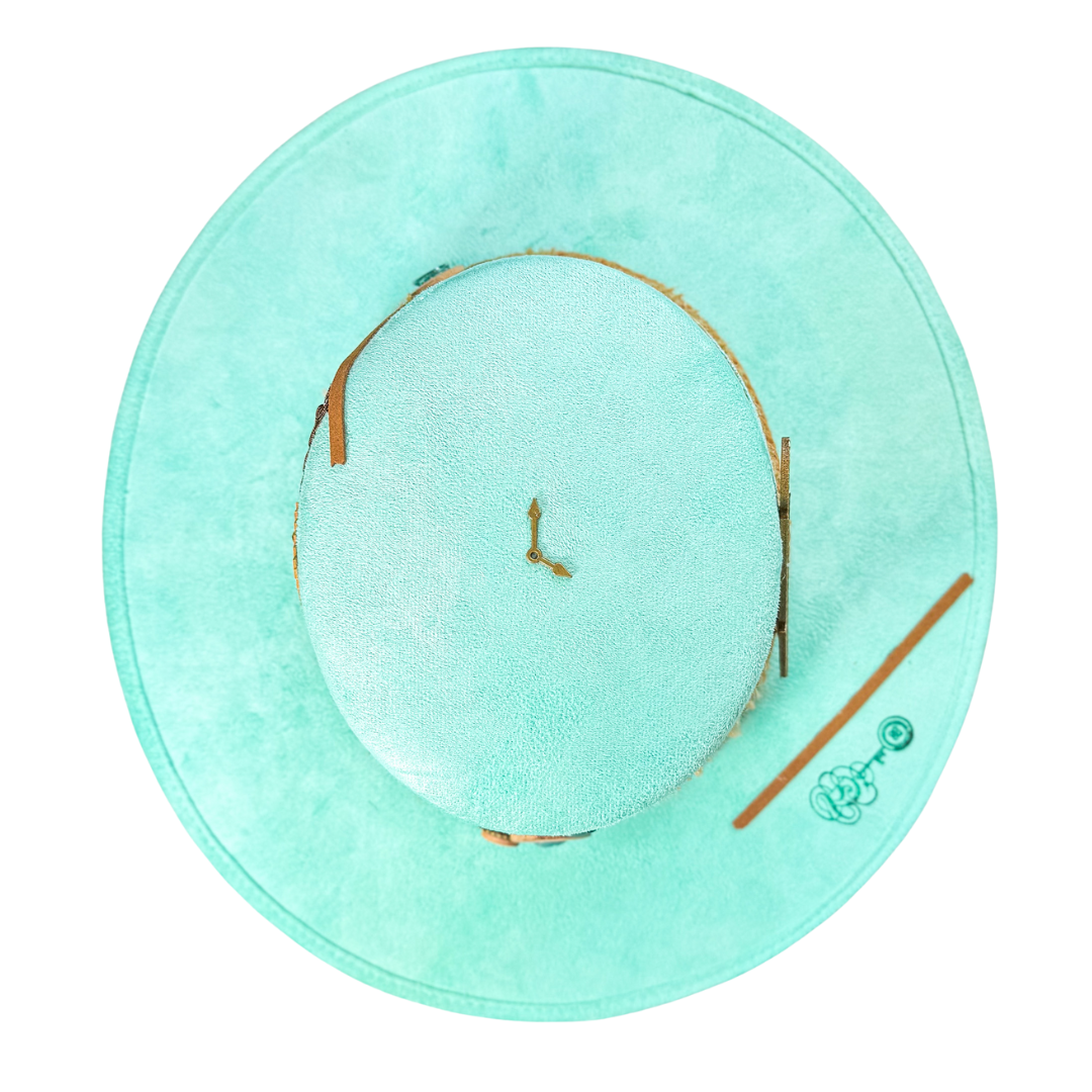 A breezy, nautical-inspired brim that evokes the feeling of far-off adventures and coastal escapes. Featuring cool turquoises and sandy beige hues, it’s perfect for wanderers at heart.